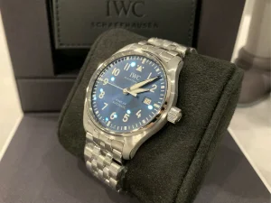 IWC Watch,Pilot Series, Model: IW328204, automatic winding, steel, diameter 40mm, blue dial, folding buckle, complete set.