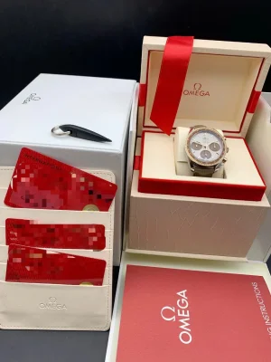 Omega, Speedmaster series, Model: 324.28.38.50.02.002, automatic winding, steel Sedna, 18K gold, diameter 38mm, Omega Speedmaster series, men's automatic mechanical watch, popular cappuccino, diameter 38mm, power reserve 52 hours, beige dial, with folding buckle, close bottom movement, Made of fine steel rose gold material inlaid with diamonds, date display, timing display, not much use.