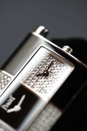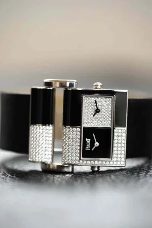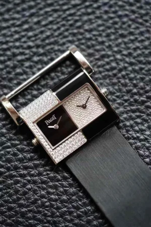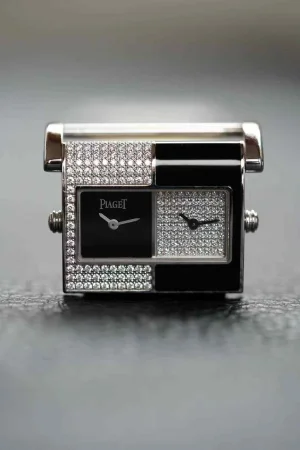 Piaget, LIMELIGHT GALA series, model: G0A31111, quartz movement, 18k white gold diamond material, 30x26mm case diameter, black agate double dial, single watch.