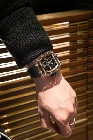 cronusart,Clos, coffee sapphire with diamond skull, hollow, automatic mechanical watch ~